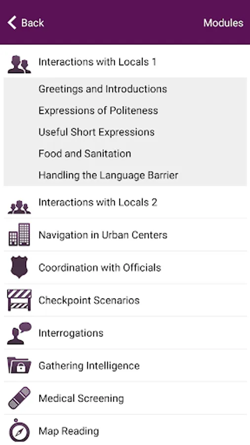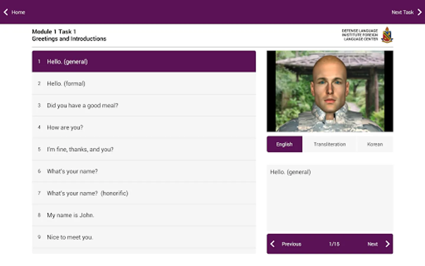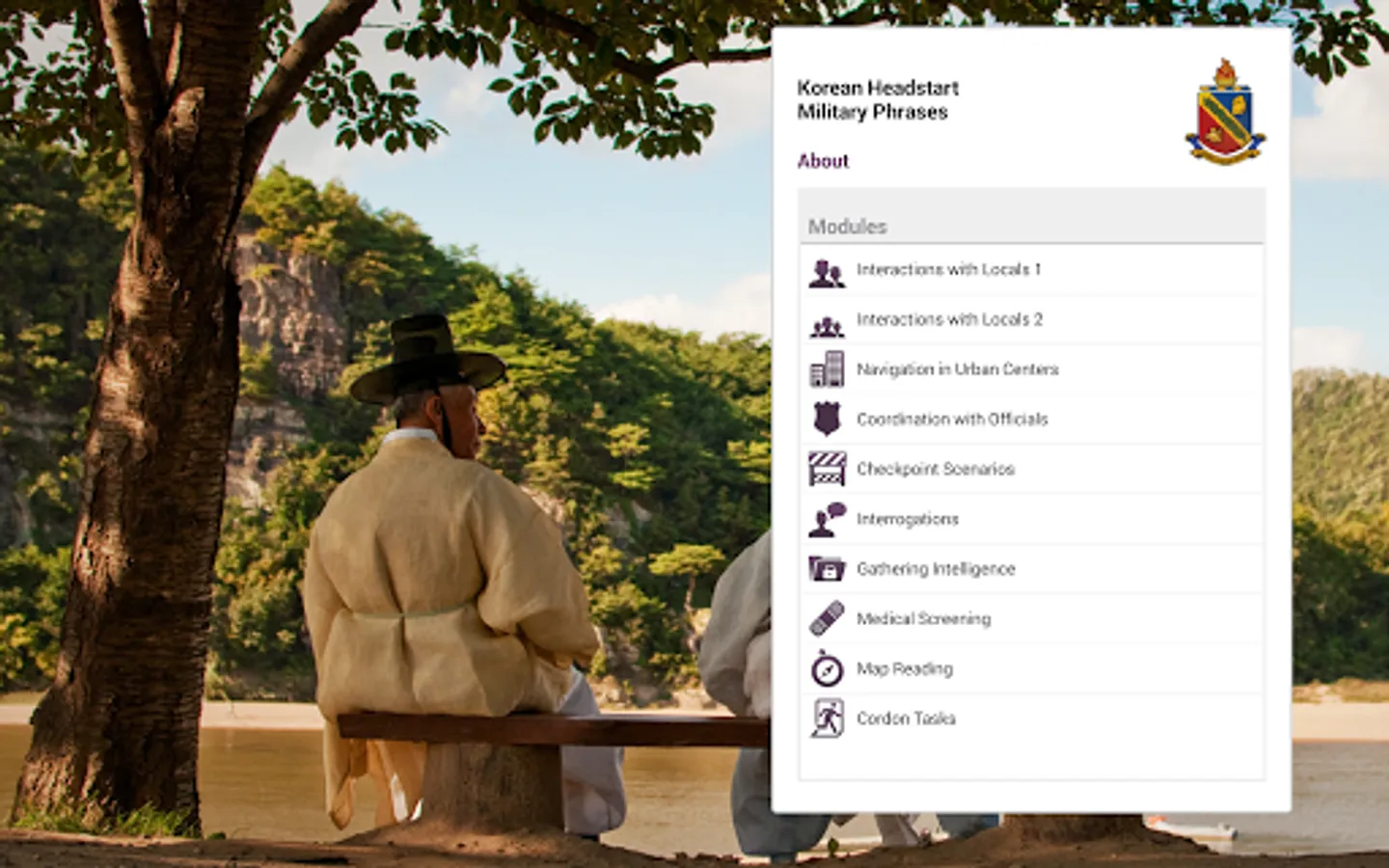 The Headstart2 Military Phrases app exposes users to 50 mission-specific tasks containing 750 terms and phrases. These tasks include vocabulary covering public safety, medical situations, basic command, cordon and search, and even gathering intelligence. Headstart2 provides users with important communication tools that are needed in preparation for deployment. The material was developed by the Technology Integration Division of the Defense Language Institute Foreign Language Center in Monterey, California.