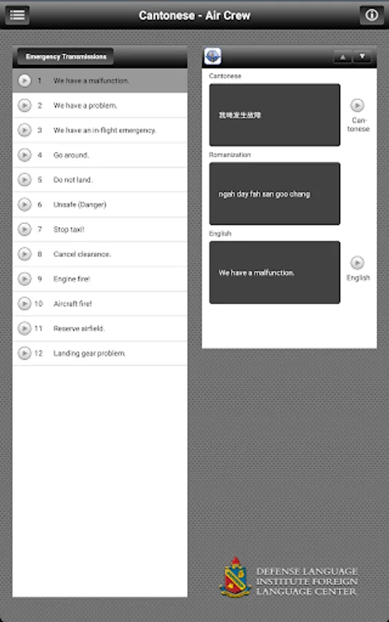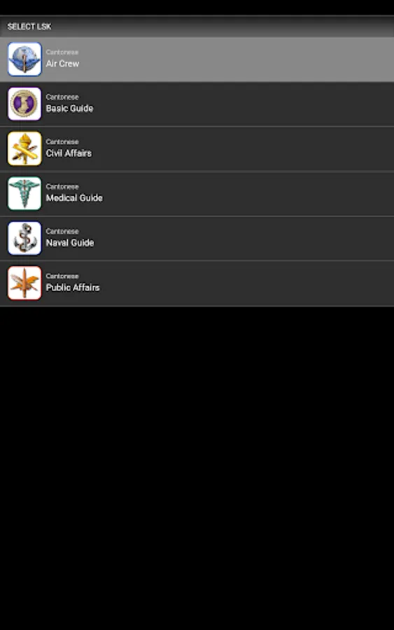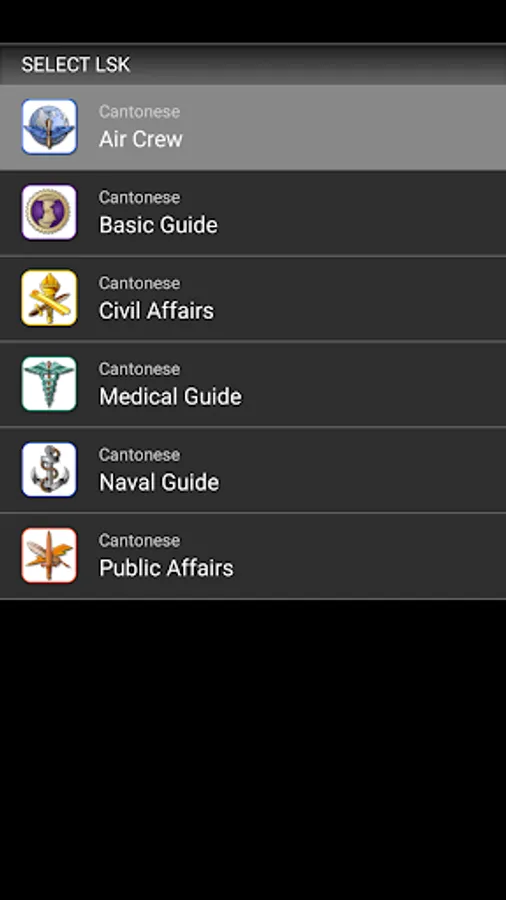 This is the Cantonese LSK. Language Survival Kits (LSKs) are designed as a quick reference available in 5 to 6 different topics per language for deploying service members. The LSKs contain mission-specific vocabulary and simple phrases in topics.