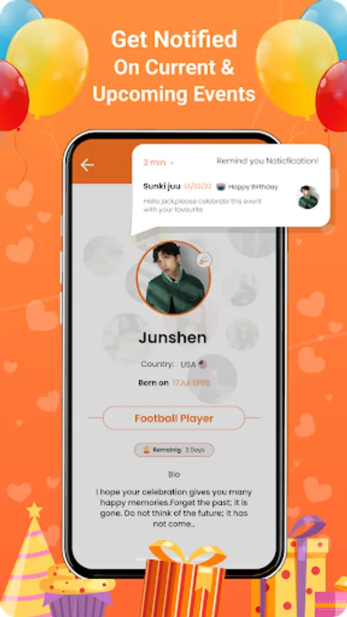 •Famous birthdays countdown by setting the reminders of celebrity birthdays