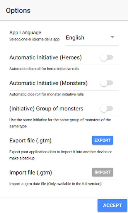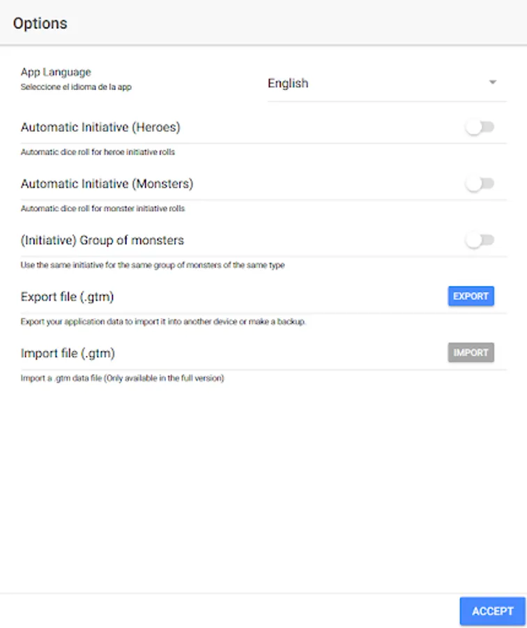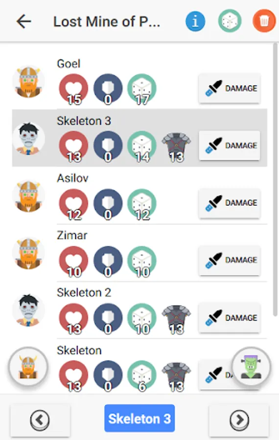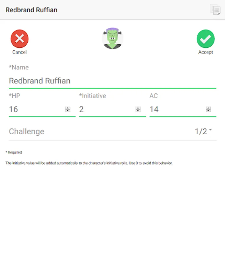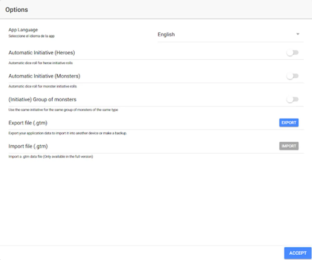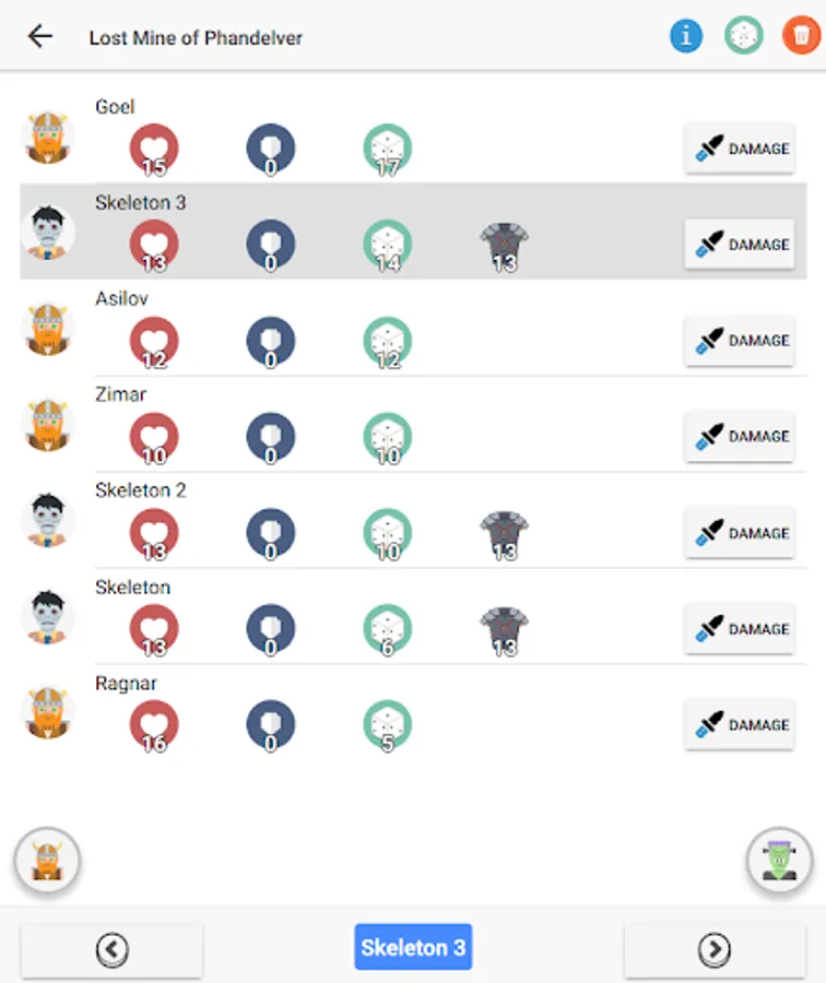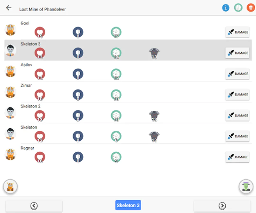 DMTool - Initiative Tracker is the app that you need when you play Dungeons and Dragons like a DM role. will allow you to track combat in a very agile and intuitive way. It has preloaded a database of 325 monsters with their initiatives and points of life. You just need to create the game, enter the heroes and choose the characters involved in the combat.
