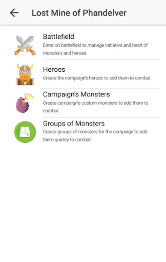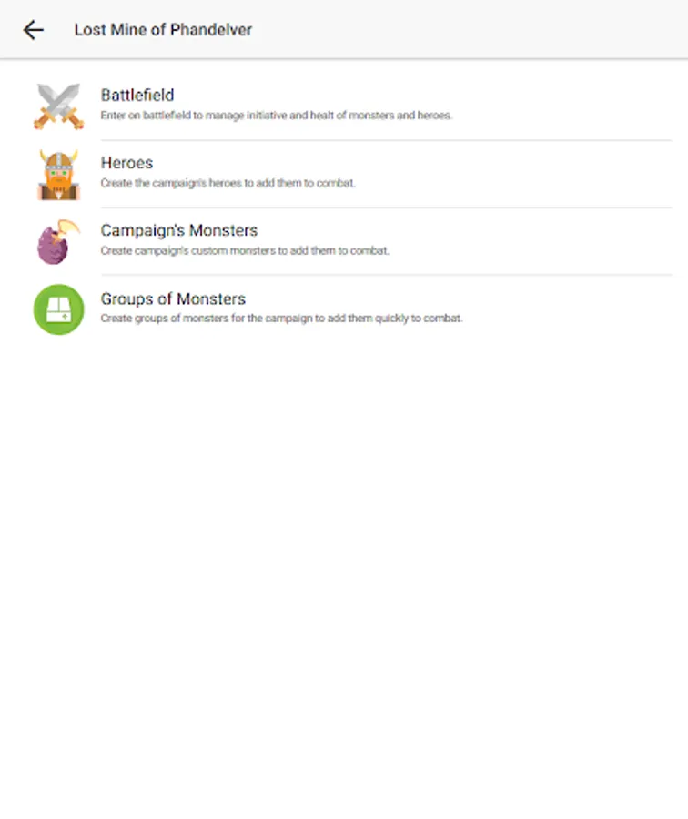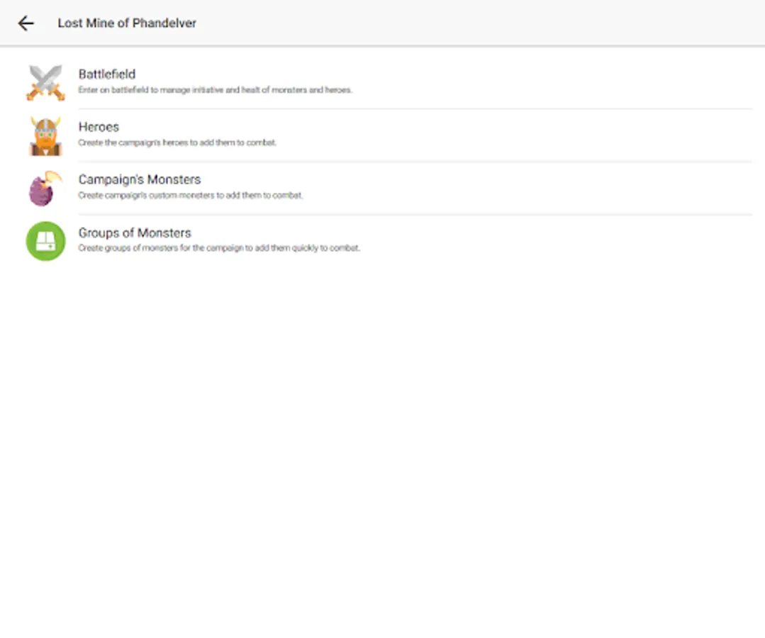 The application allows you to separate and organize your campaigns in an optimal way. You can create the heroes involved in a particular campaign that you are carrying forward and add all (or some) to the battlefield.