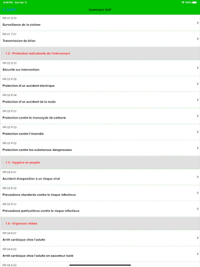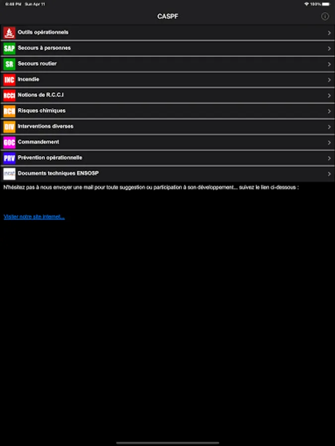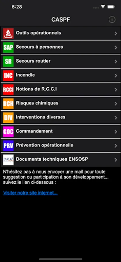 This application is a memory guide for the attention of the chiefs of apparatus and group chiefs of the firefighters of France.