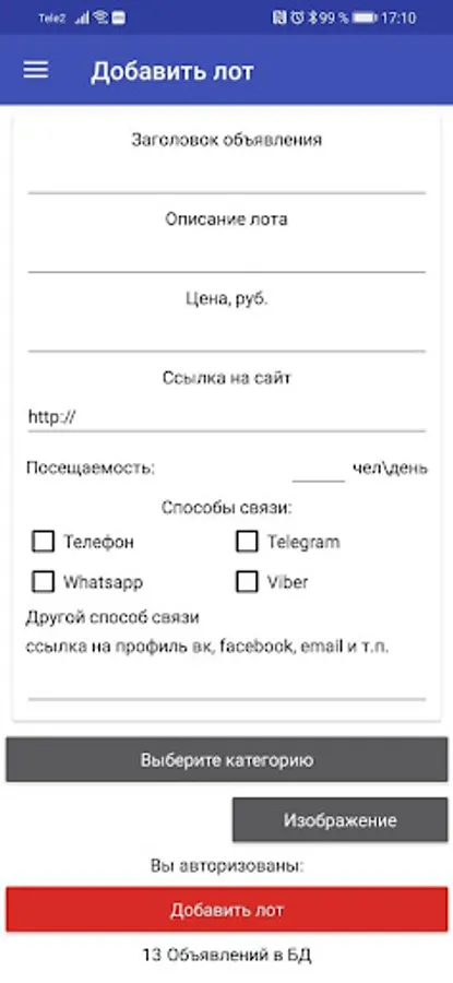 In the application, webmasters or site owners can place ads for the sale of sites for free. The application has an intuitive interface and simple registration. After registration, you can place an unlimited number of ads for the sale of sites, which instantly become available for viewing.