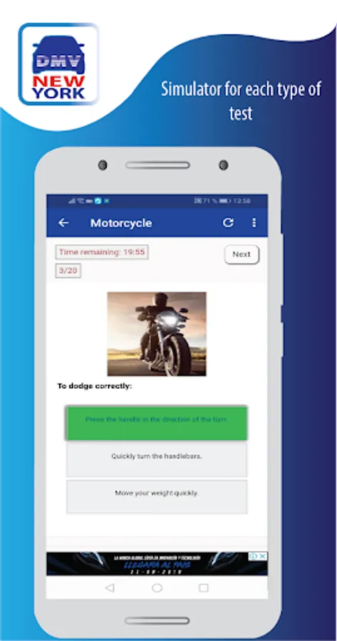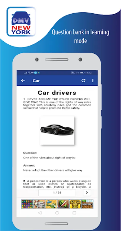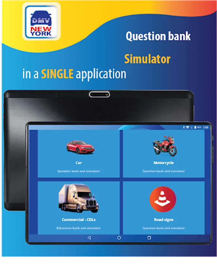 DMV New York, preparation for the driving knowledge test. If you are waiting for the date of the car driving test, Motorcyclist, Commercial CDLs, this application is definitely for you. This New York driver's license test application is specially designed for people who want to take the DMV permit test in New York. With this New York permit test practice application, you can practice the driving test questions you take on the test similar to the New York Department of Motor Vehicles.