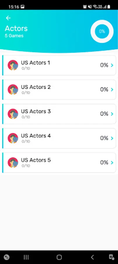 Each Category contains games covering Actors, Singers, Athletes ...