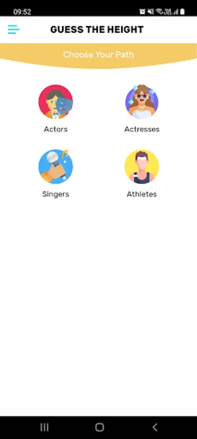 - 4 categories of quizzes : Actresses, Actors, Singers, Athletes