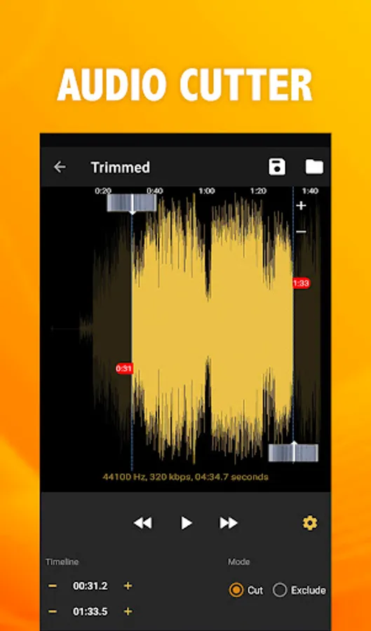 Change the aspect ratio of any video file with this best video trimmer.You can also use features like Video Cut, Audio Cut, Video to MP3, Screen-shot from your mobile.