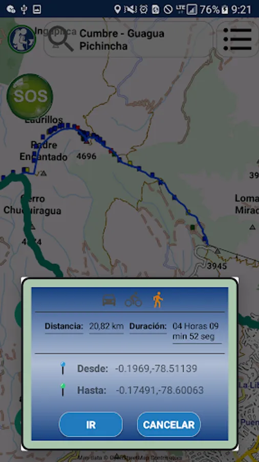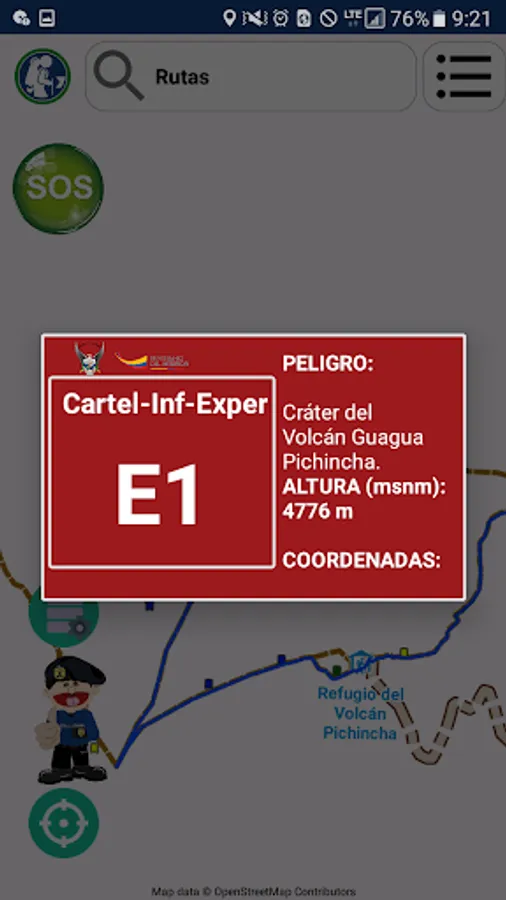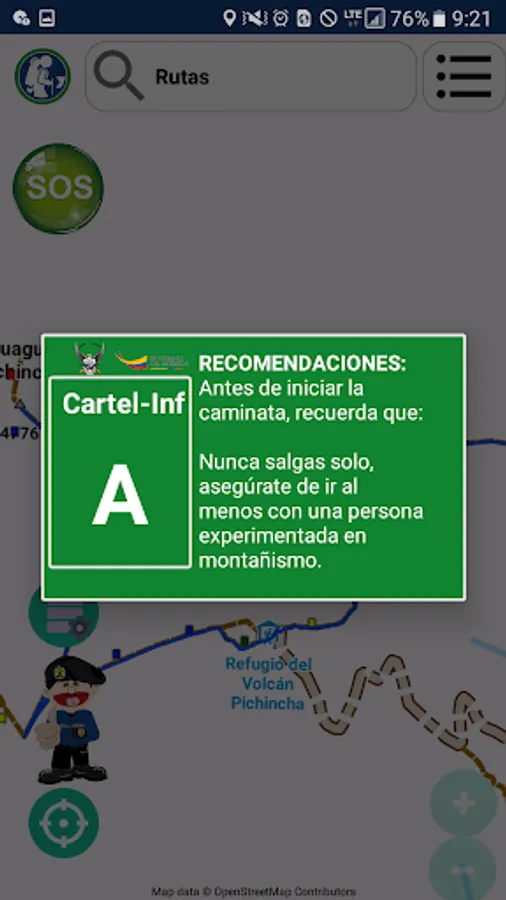 “Sendero Seguro” is a mobile application that allows directing or guiding people who like mountain climbing or tracking, in unfavorable weather conditions for which they have lost the route or it is difficult for them to advance to a safe area. The application displays information on each of the signage that is installed throughout the entire route of the Pichincha integrals (Guagua Pichincha, Padre Encantado, Ladrillos and Rucu Pichincha).