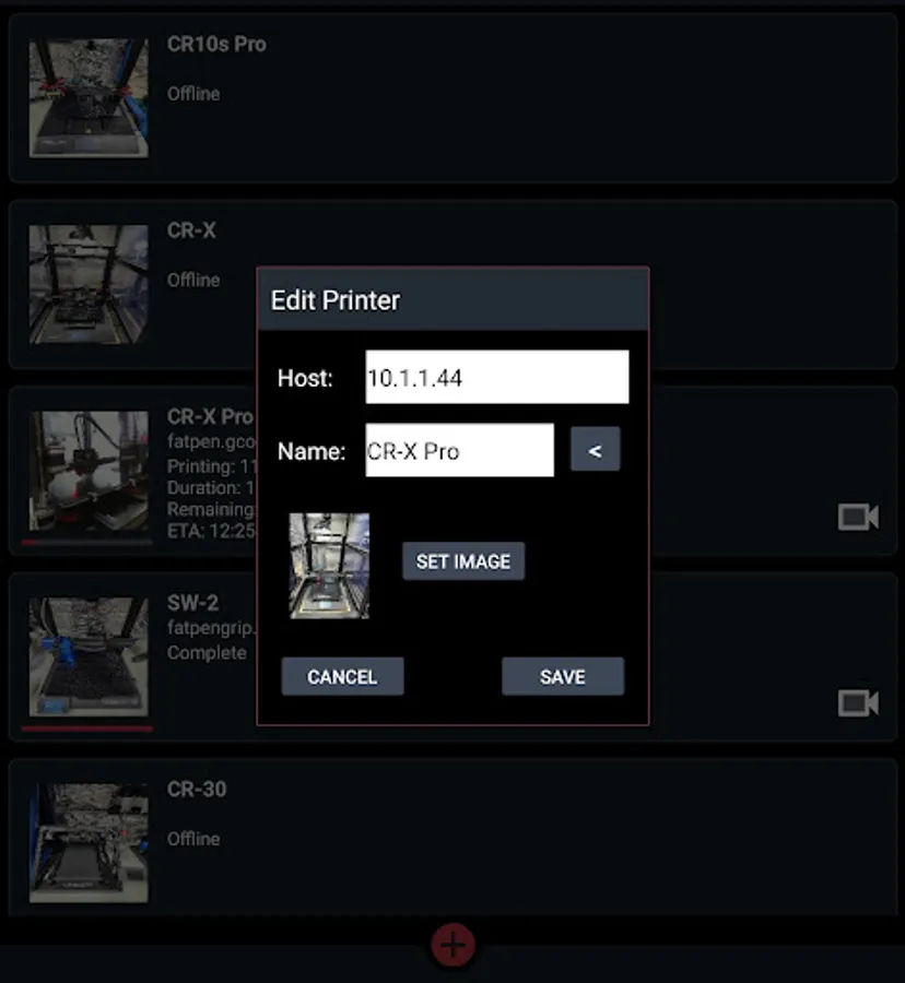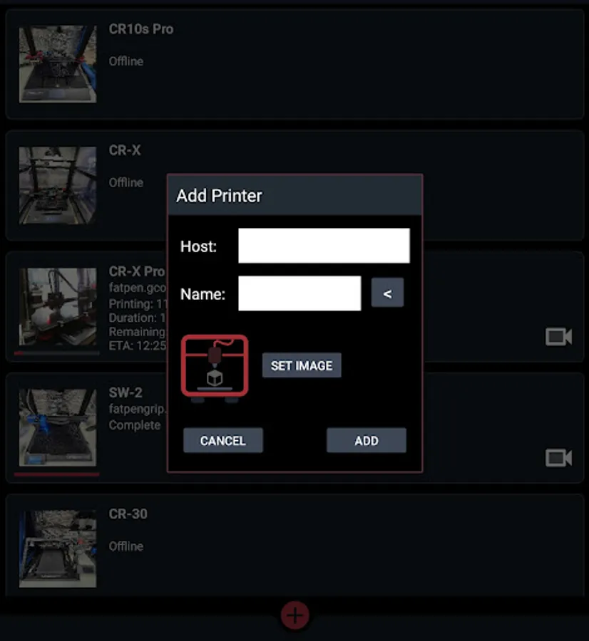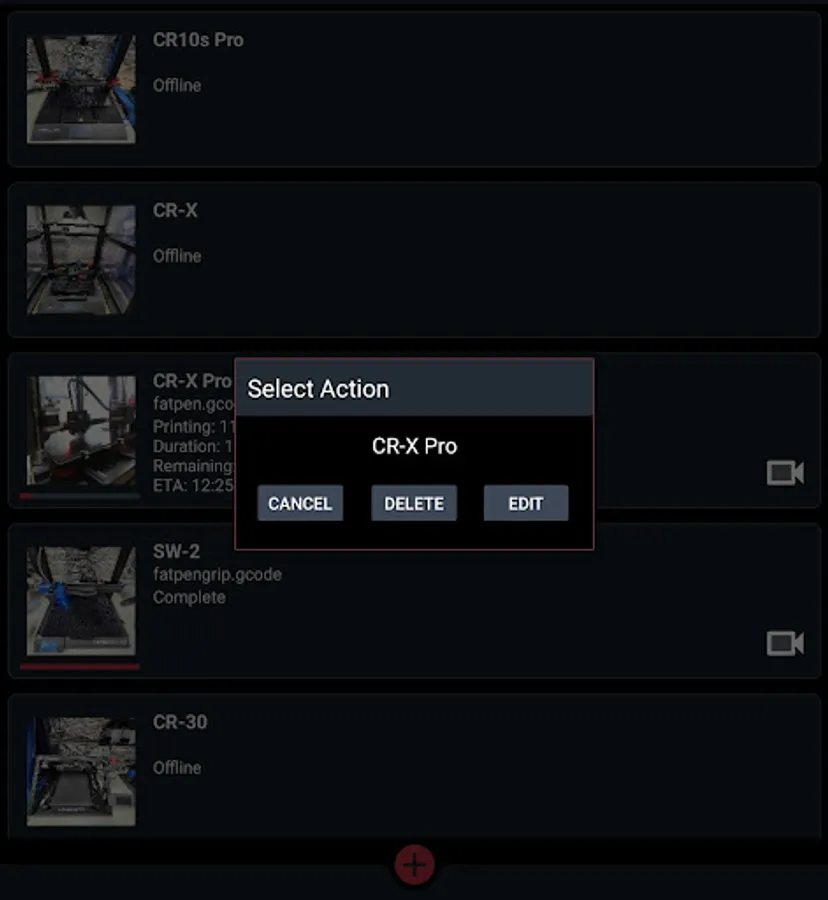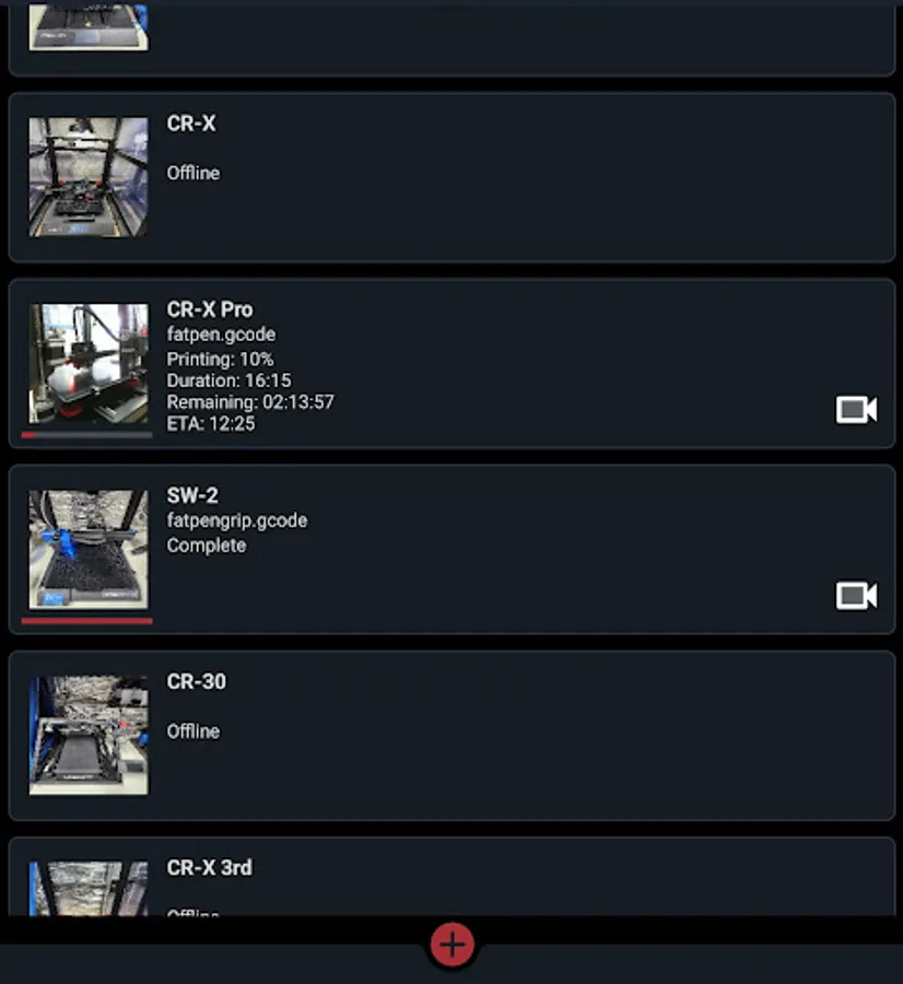 The app allows you to check the print statuses of all printers, view cameras and open the web portal to the printers.