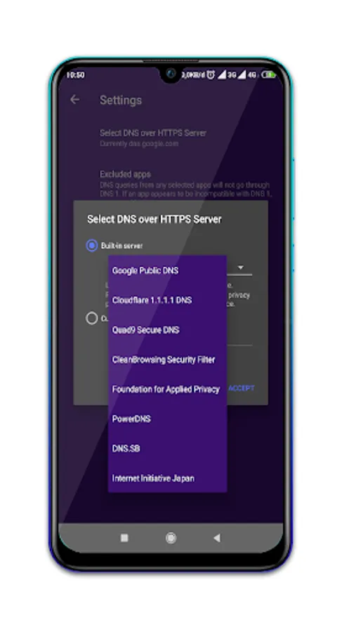 The DNS 1 application is also easy to use, just one touch to make your internet more secure and private.