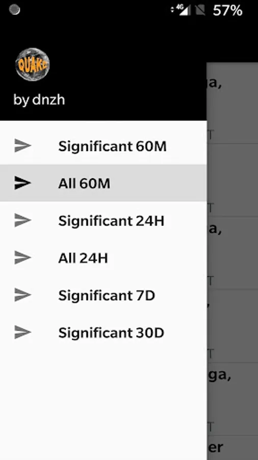Earthquake by dnzh App delivers real-time updates / notifications of the {most recent}, {all 60-minute}, {significant 24-hour}, {all 24-hour}, {significant 7-day}, {significant 30-day} earthquakes around the world...