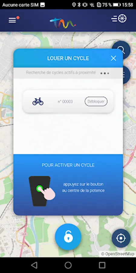 The bicycles are available 7 / 7d and 24 / 24h thanks to the application TM à Vélo!