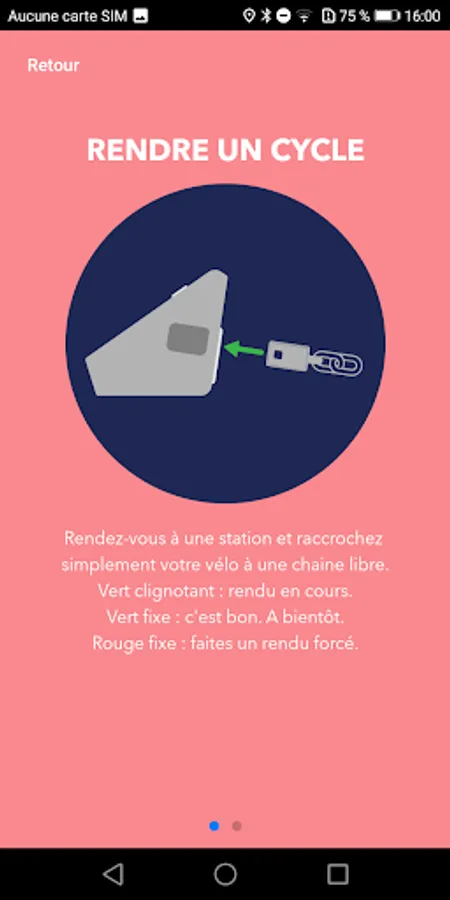 You have a lock in the basket. For example, circle a pole or pole and insert the lock into the hole in the basket. The handlebar flashes green. As soon as the light is green fixed, then the bike is locked. You are the only person who can take it back.