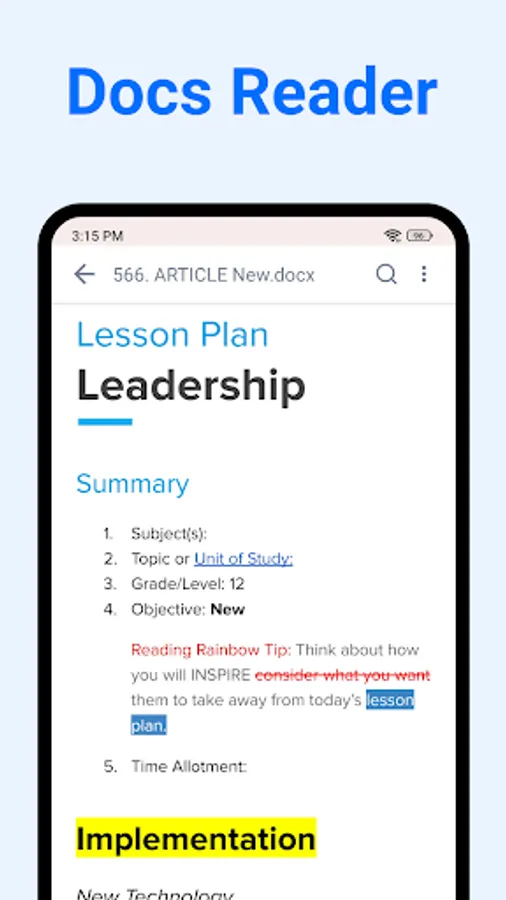 Word document reader is an efficient and productive tool for reading document files. Install Office Word Reader - Docs Reader today and start collaborating on your work with all document readers. Read file doc without an internet connection, docs viewer offline. Word file reader is an efficient office and productivity tool for reading document files. Docx file opener and an editor will be fully compatible with Office suite files including Word and Docx files.