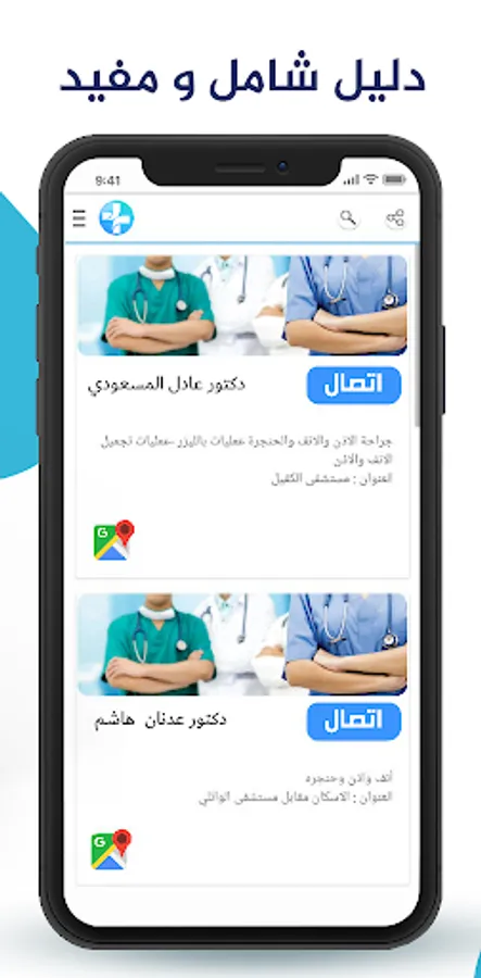 Through the application, patients can know the locations and addresses of available doctors and their clinics, in addition to phone numbers for booking appointments. The application also provides the advantage of using maps to facilitate access to the clinic in one click, using the most modern mapping system in the world.