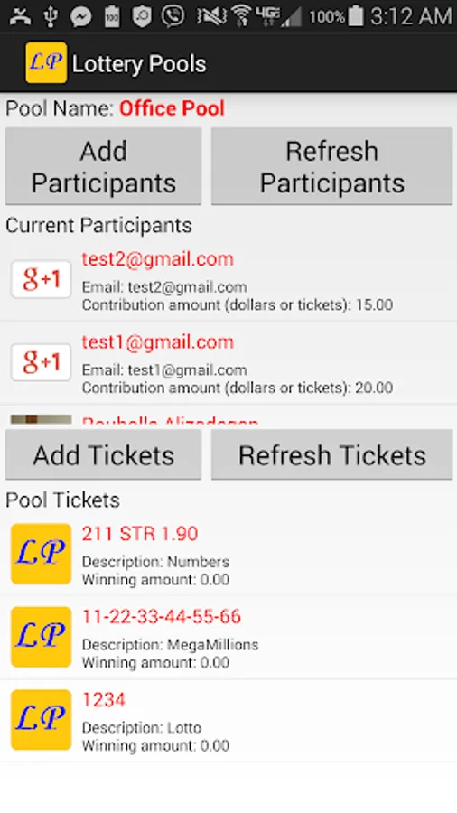 If you answered yes to any of the above questions, Lottery Pools app for Android is your solution! Here, one person buys the tickets (pool leader) and inputs them into the app and adds all the other participants to the pool. No one can remove a pool or a ticket from the pool once they are created, and every one in the pool can see them and know which tickets have won. (With read-only access.) This way, every participant can know exactly if they've won anything and how much every one should receive.