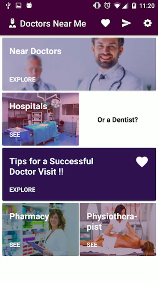Doctors Near Me is an app that looks for the nearest Doctors to you, to save you time and give you all the informations you need about the doctor: Reviews, Images of their cabinets, distance between you two, time to get there...