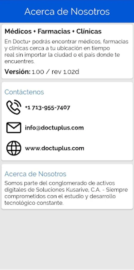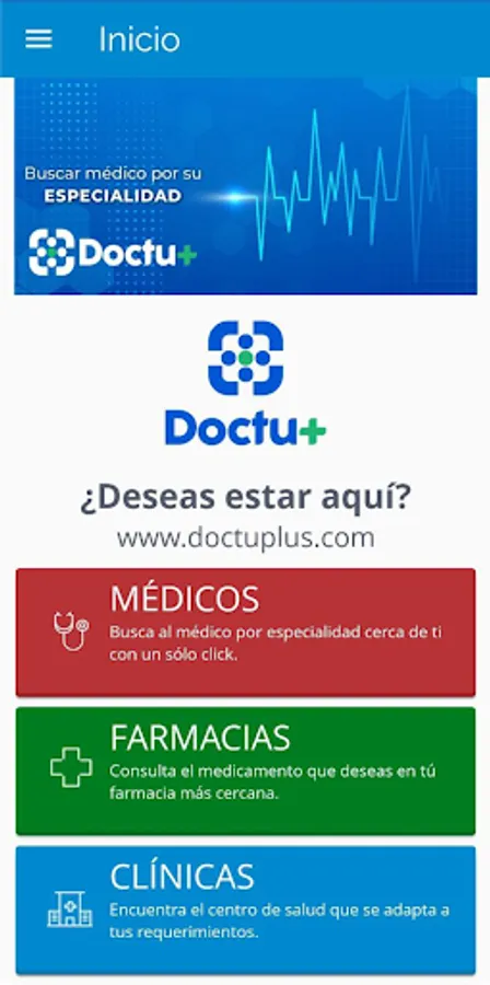 Doctu Plus is the application that allows you to locate doctors, pharmacies and clinics near you in real time, without many cumbersome procedures, easily and quickly.
