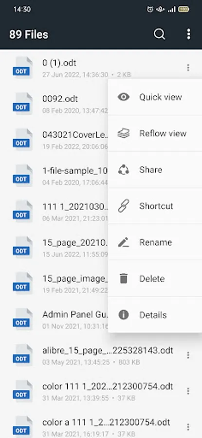 ► Delete/Rename/Shortcut: You can rename, delete, make shortcut and view details of your ODT files easily with simple operations.