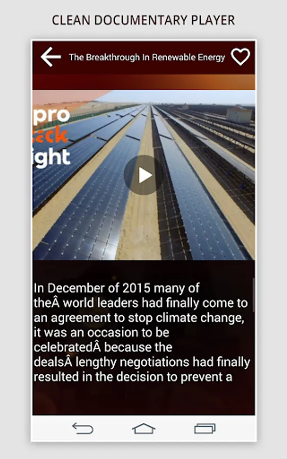 We have design the application each screen by keeping in mind, its usability remains easy to end user. That is why you can easily watch your desired documentaries, with the beautiful and elegant player we have developed for this app. Just download the app now from Google play store and enjoy this master piece of app for documentary lovers.