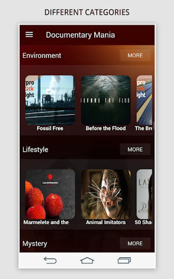 You can easily search documentaries by its title or category. You can search your favorite documentary videos through this app.