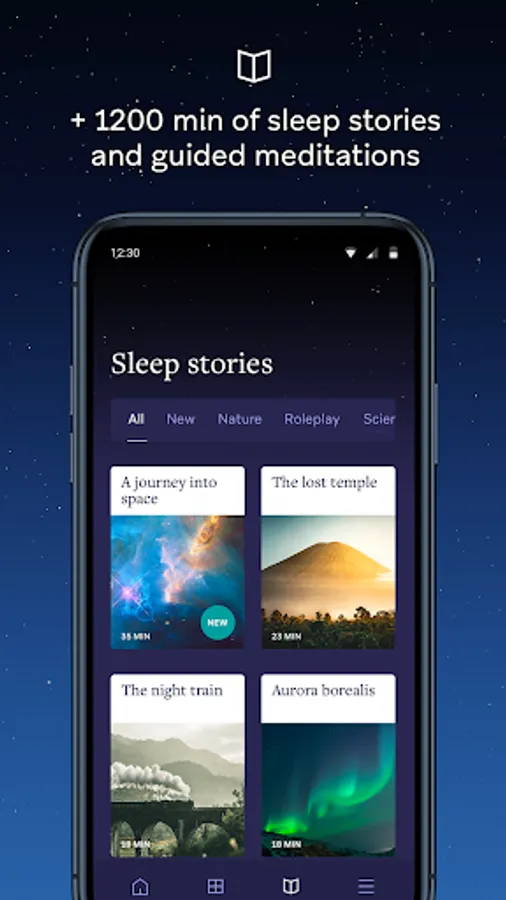 • + 1200 min of sleep stories and guided meditations, created by sleep experts