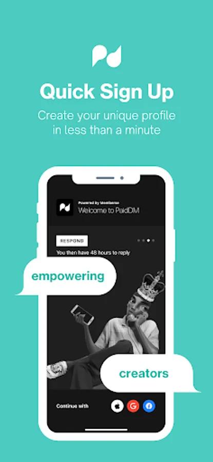 Our PaidDM platform streamlines the process, allowing you the power to set your own price per message, respond within 48 hours, and monetize while creating authentic 1:1 connections.