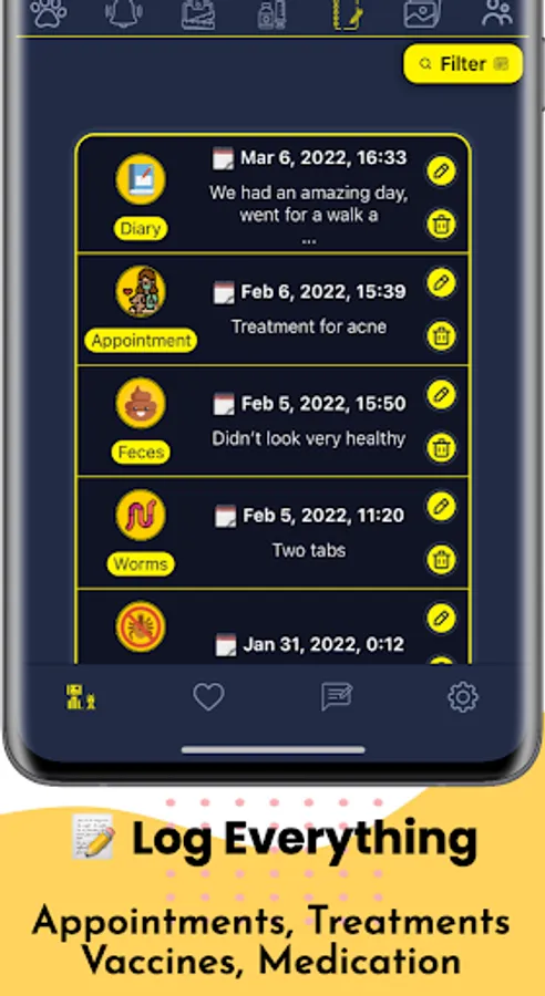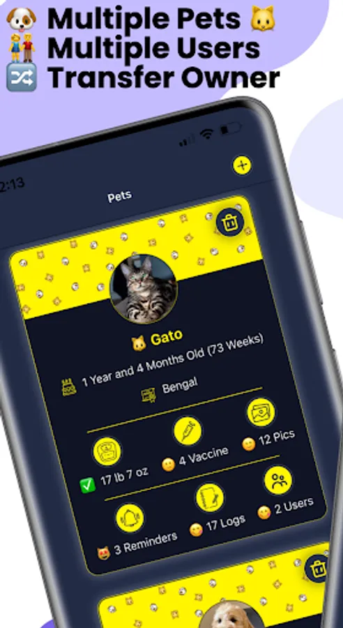 Birthdays, weight tracking, appointments, vaccine / vaccination, food, medicine / medication, treatments, grooming, get reminded of everything!