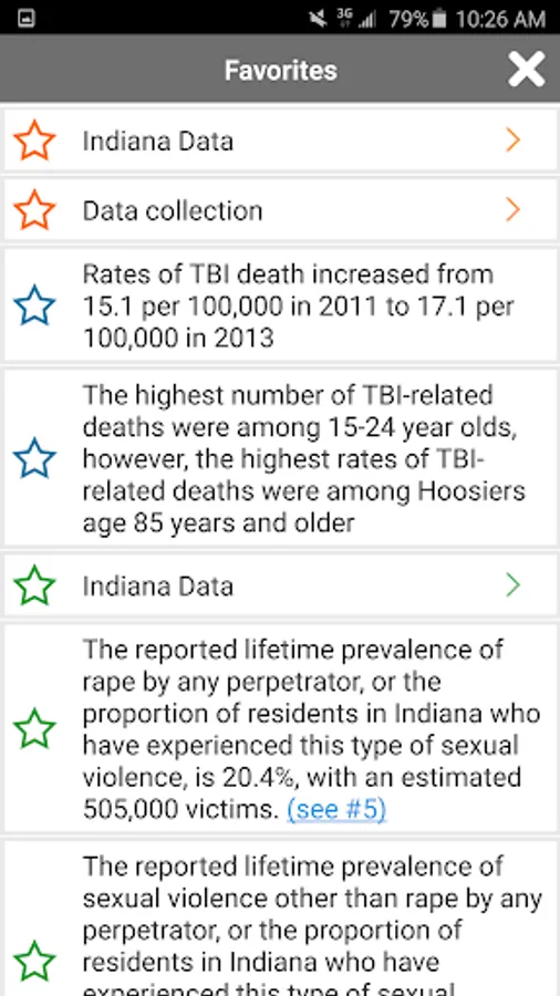 The target audience of this app includes, but is not limited to individuals and organizations concerned with preventing violence and injuries, such as healthcare professionals, public health professionals, trauma program managers and coordinators, care coordinators, injury prevention coordinators, social workers and case managers, and trauma medical directors. By helping to incorporate what is known about injury prevention strategies into programs, practice, and policy, we can together help ensure Indiana remains safe and healthy. The intended use of this app is as a resource and reference to address the problem of injury at both the state and local level. The app also brings awareness to the problem of injury, focuses on data-driven decision making and evidence-based solutions, and identifies areas of opportunity in Indiana. This is the first edition of the app, with additional injury prevention topics and resources to be added.