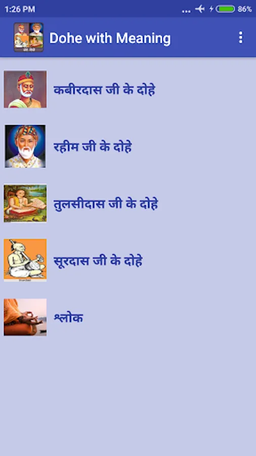 1. Kabirdasji, Rahimji, Tulsidasji, Surdasji Dohe with Meaning.