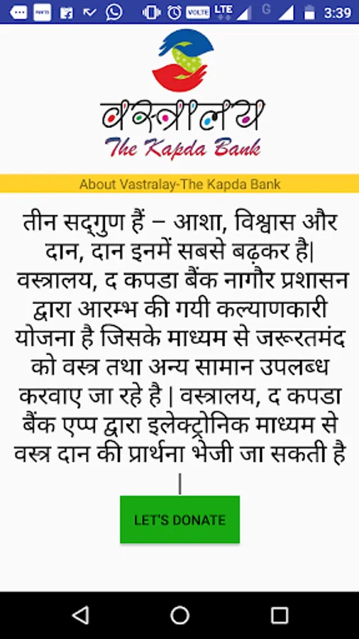 • Vastralay-The Kapda Bank provide platform to citizen to donate used cloths and other items to beneficiary in digital way.