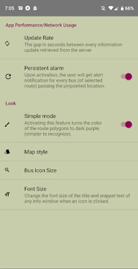 This application provides the users with nice animations for the moving vehicles on the map and precise polygons representing routes on which the buses are operating. The app follows the material design convention and is easy to use.