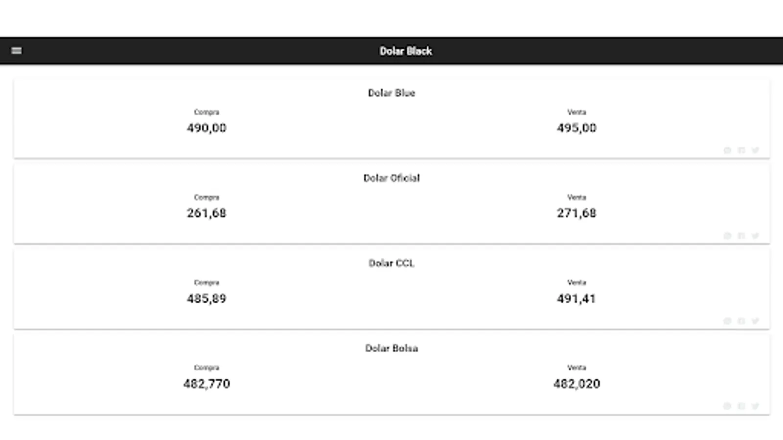 - Real-time quotes: Stay informed about the prices of the dollar in different variants, such as the blue dollar, MEP dollar, tourist dollar, stock dollar and official dollar. With constant updates, you will have the most accurate and reliable information at your fingertips.
