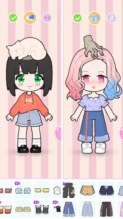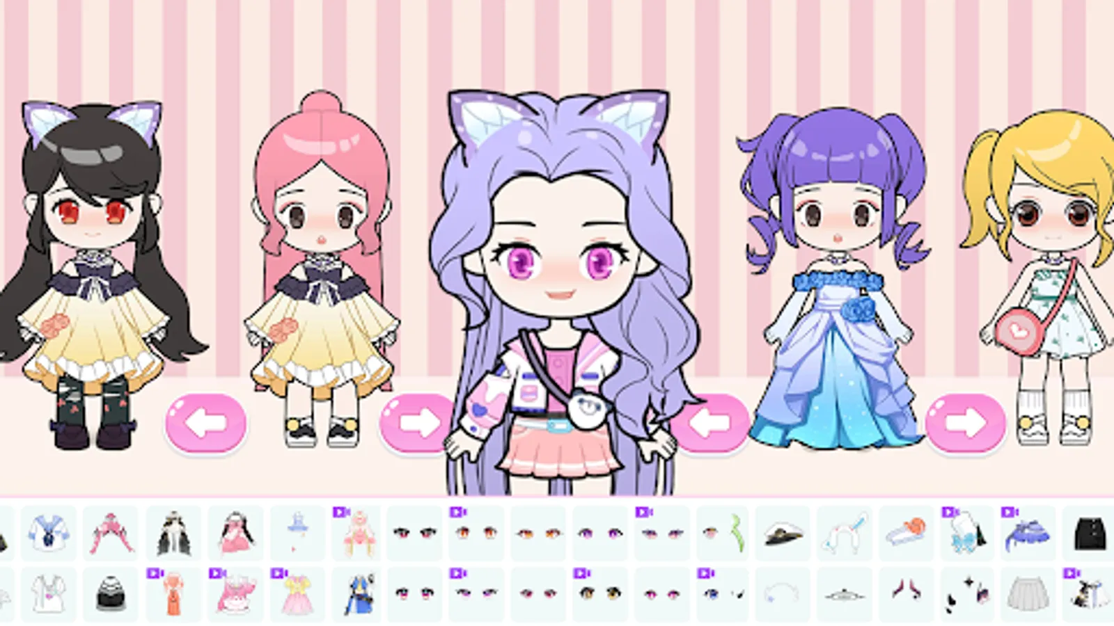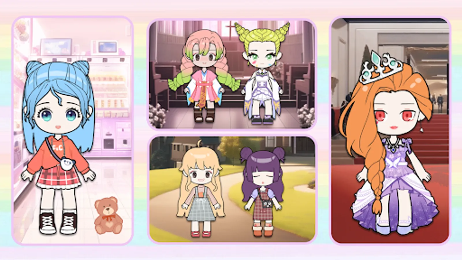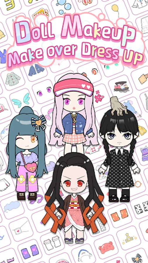 β¨ The gameplay is rich and fun. You can create a lovely anime doll by cleaning, caring, makeup, and dressing up for the girl in three parts. Use your imagination and creativity to give the character a big makeover and become a doll designer! You can dress up cute anime characters in unique ways and create your own anime characters. Choose your ideal clothing, match it with a cool face, and bring the beautiful princess character to life!