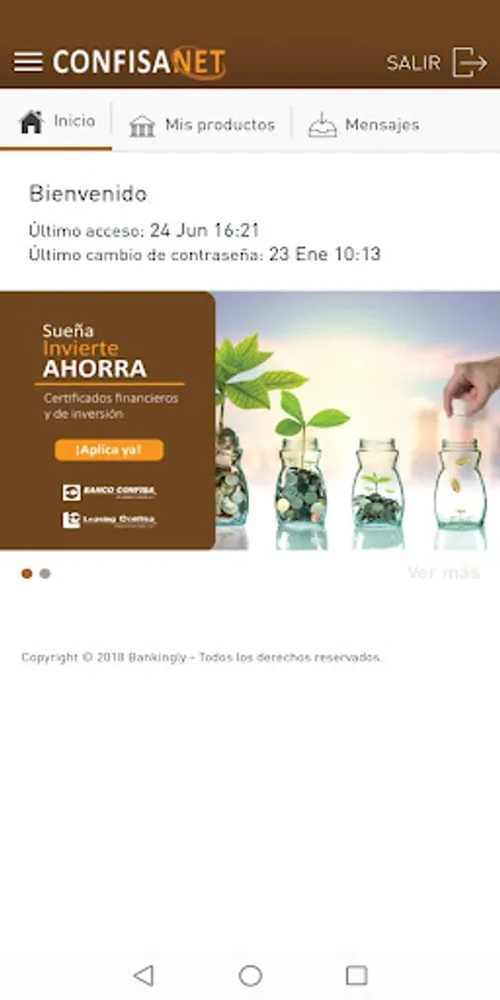 Mobile application of the Confisa Savings and Credit Bank and the Confisa Credit Leasing Corporation.