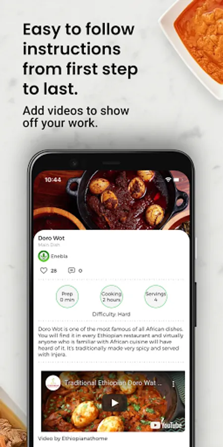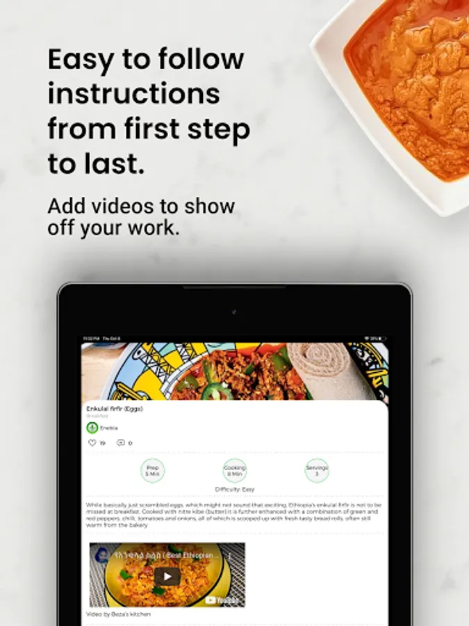 Enebla brings you the worlds first Ethiopian/Eritrea food recipe app that contains useful tools for recipe management and different ways to improve yours skills in the kitchen. It combines a built-in library of recipes users can share among each other, sorted by category with instructions and videos of step by step meal preparations.