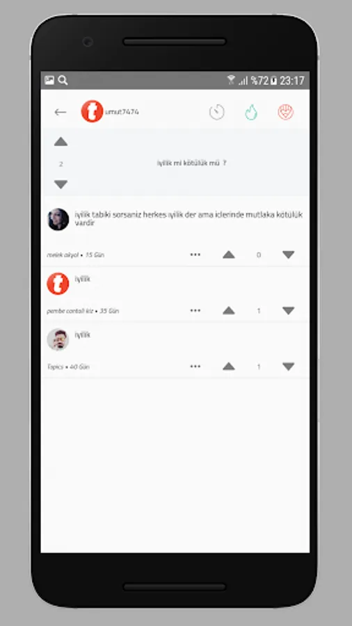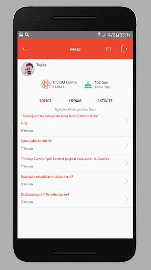 This application allows users to earn special KARMA points based on the created topics, to receive comments received and votes received for other topics / comments.
