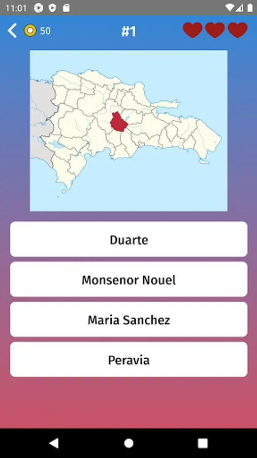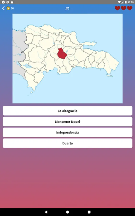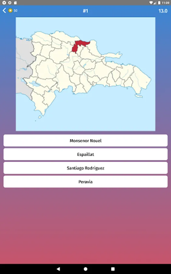 - Multiple choice: guess the states of Dominican Republic, by selecting one of the variants like in exam.