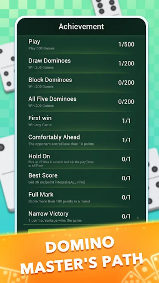 -Domino achievement system, make you challenging in the game