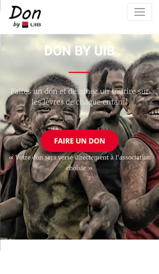 DONATION BY UIB, a mobile and web app, fast, ergonomic and secure to allow customers and non-customers to share their generous donations online at any momment "24H / 24 and 7/7 'associations partners of UIB.