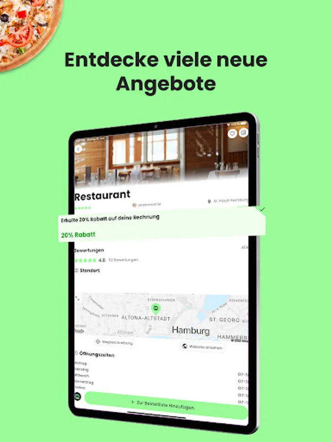 Download DonoDine today and immerse yourself in the exciting world of Hamburg. Discover new restaurants, enjoy exciting leisure activities and take advantage of great offers and discounts. Your adventure in Hamburg starts now with DonoDine!