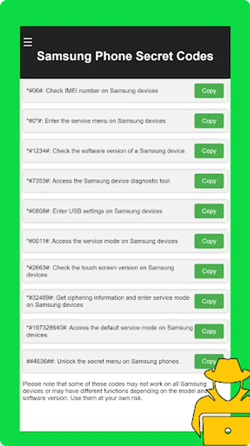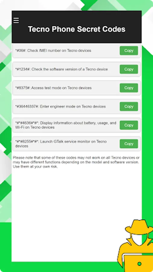 Unlock hidden features on your smartphone with Secret Codes for Mobiles - Mobile Hack Codes. Enter secret codes to access hidden menus and settings on your phone. It's perfect for customization and accessing hard-to-find features. The user-friendly interface supports a wide range of smartphone brands and models. The app is constantly updated with new codes, and the search function makes it easy to find the code you need.