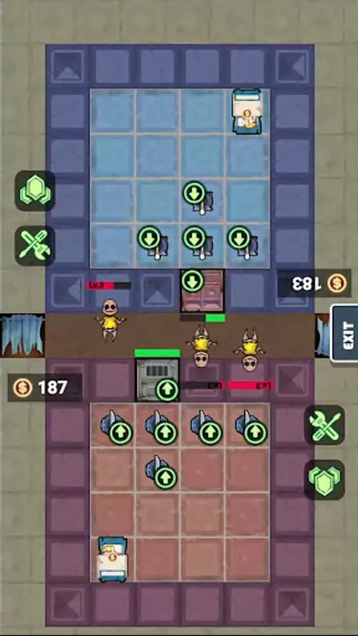3.Upgrade your bed to be a steel bed or a normal bed. The higher class bed will help you earn more coins to purchase wapons and better doors. Upgrading your bed also costs coins.
