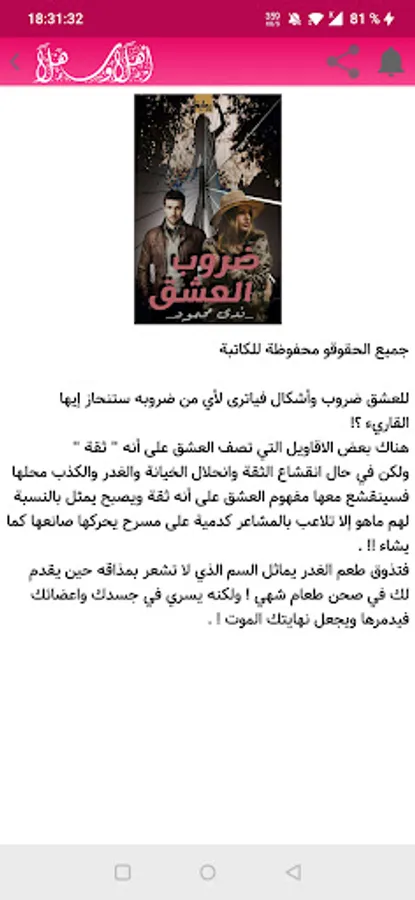 Welcome everyone! I am pleased to share with you the novel Cruelty of Love by the author Nada Mahmoud. Which soon made this novel a great success due to its great popularity and progress in the Arab world