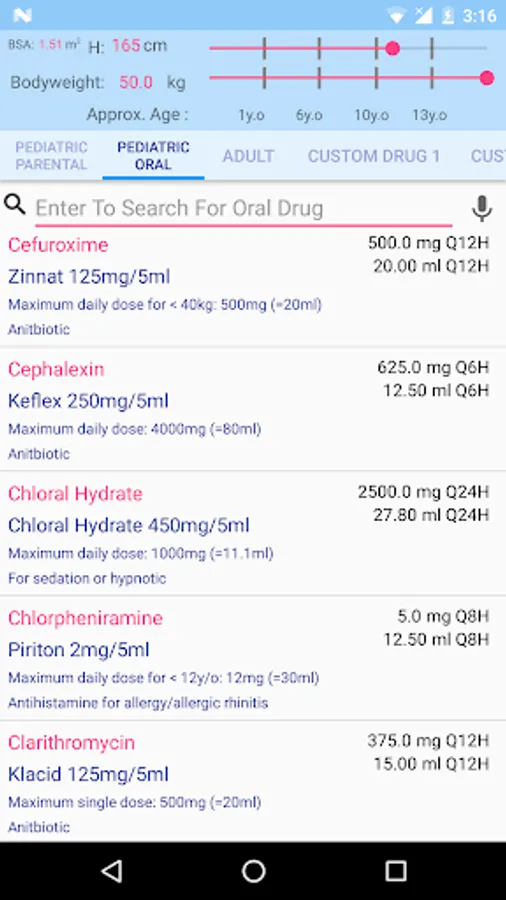 Quickly find the dosage of commonly used IV and Oral drug for children!