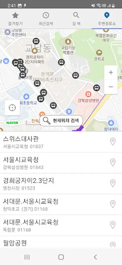 Only necessary bus routes in the bus stop can be registered as favorites, so only the necessary information can be easily checked on the Favorites tab.