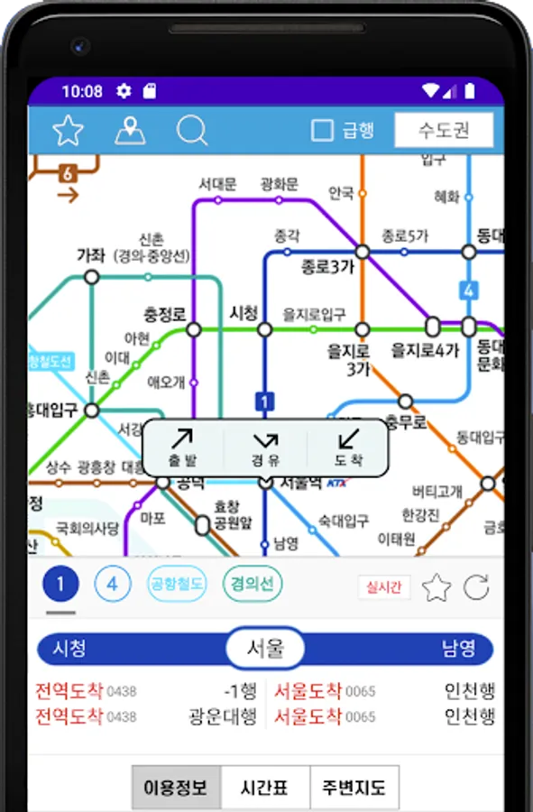 - 내주변역 기능으로 현재 위치에서 가까운 역을 쉽게 찾아 볼 수 있음