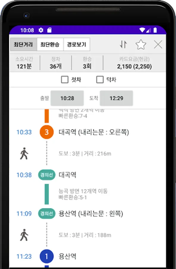 - 출발/도착 시간을 사용자가 지정하여 경로 검색