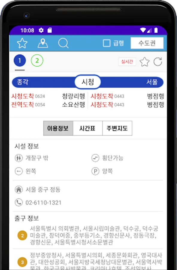 수도권은 서울시에서 제공하는 실시간 정보를 반영하고, 그 외 지역은 시간표 기준으로 도착 정보를 알려 줍니다.