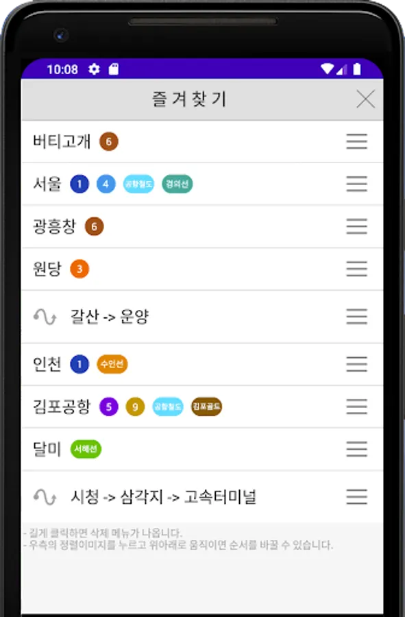 - 즐겨찾기 기능으로 내가 주로 이용하는 노선 및 역 정보를 빠르게 살펴볼 수 있음